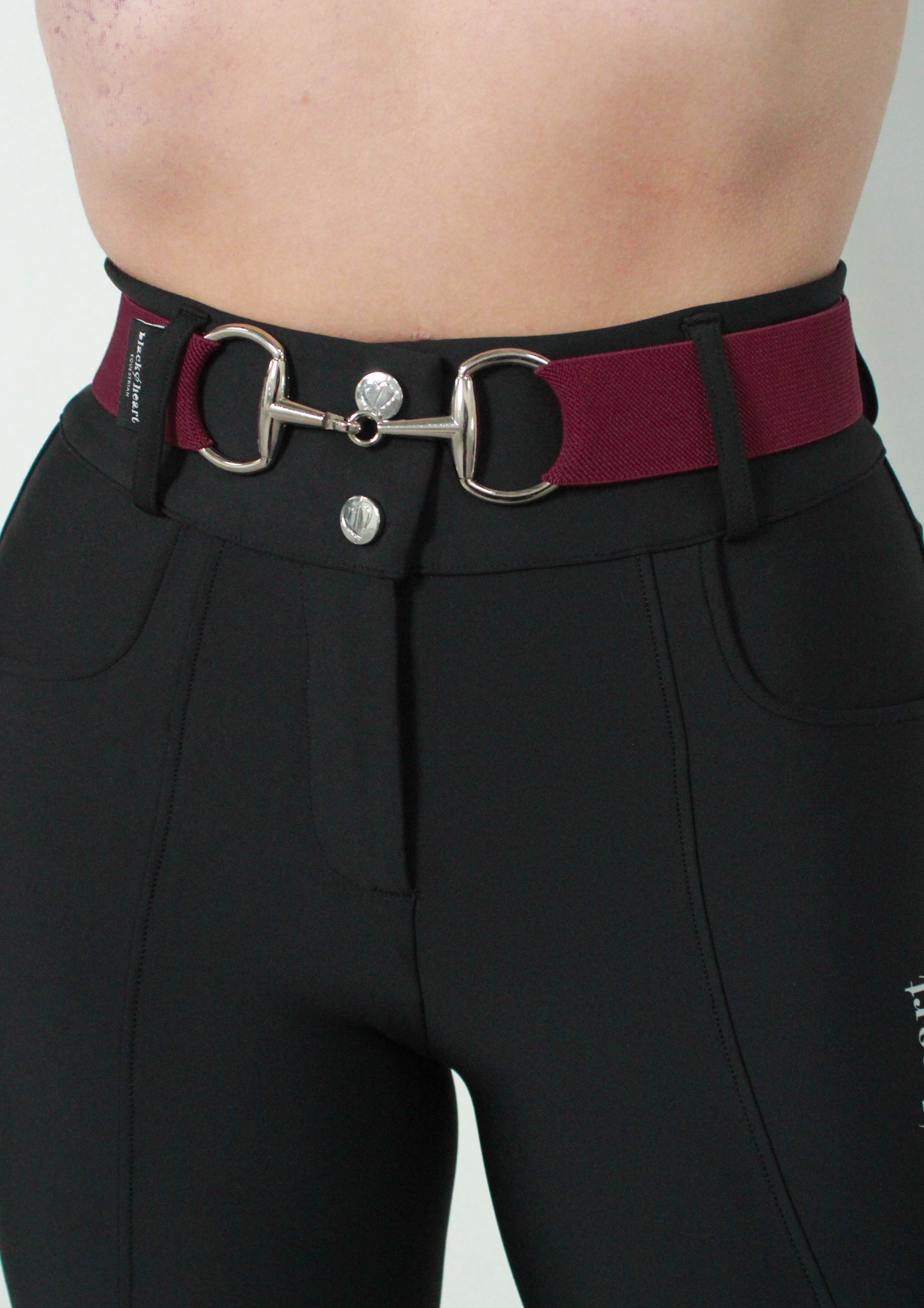 The metal snaffle bit clasp and stretchy elastic fabric make these a comfortable and smart finishing touch to your Cara Hybrid breeches.