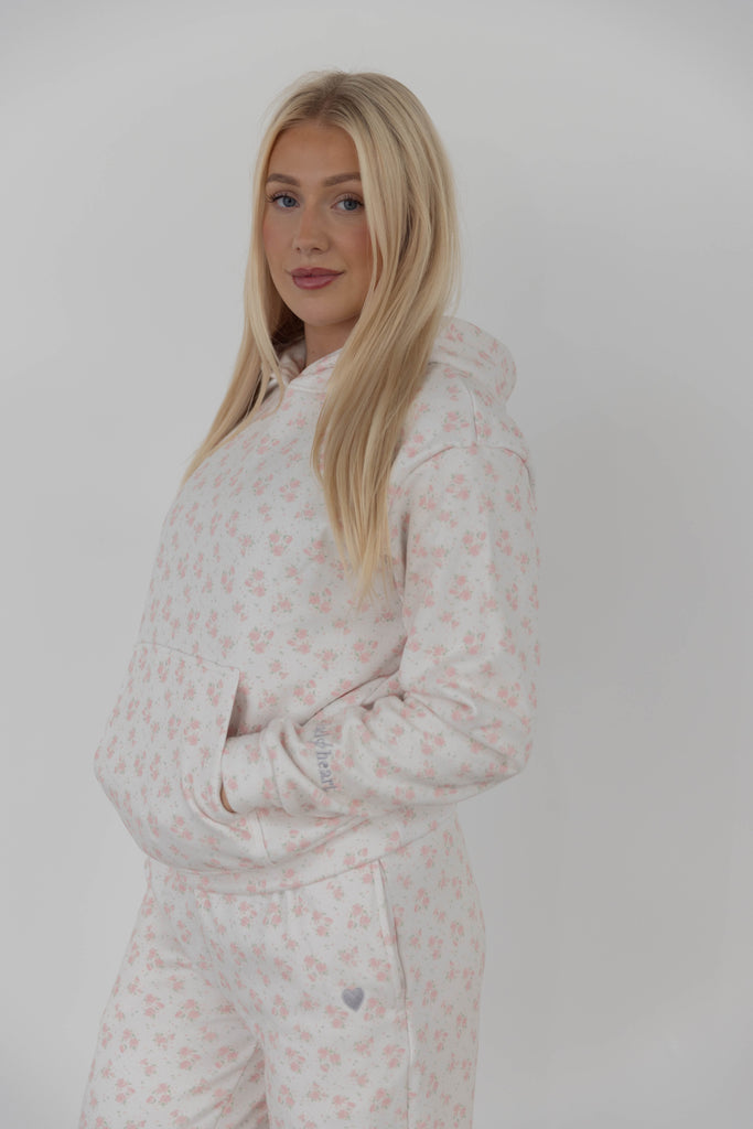 Featuring our signature Vintage Rose print, brought to life with a silver embroidered heart on the back that adds just the right amount of shine. A subtle Black Heart logo sits on the left cuff. Finished with an oversized kangaroo pouch and a roomy hood, this hoodie is built for comfort, confidence, and everyday wear.